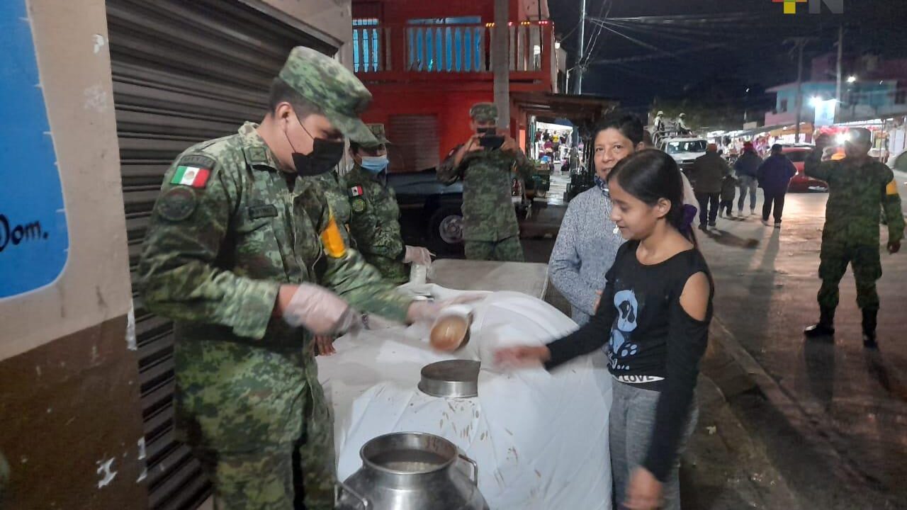 Brinda Ejército Mexicano alimentos calientes a personas de Poza Rica